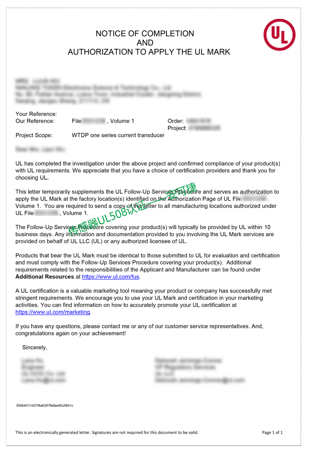 通过安可捷的努力和支持,江苏某电子公司成功通过了UL508认证,证明其传感器符合相关标准和法规。这不仅是对江苏某电子公司的认可,也是对安可捷专业团队的认可。安可捷将继续为客户提供高质量的认证和测试服务,为客户的业务发展保驾护航。