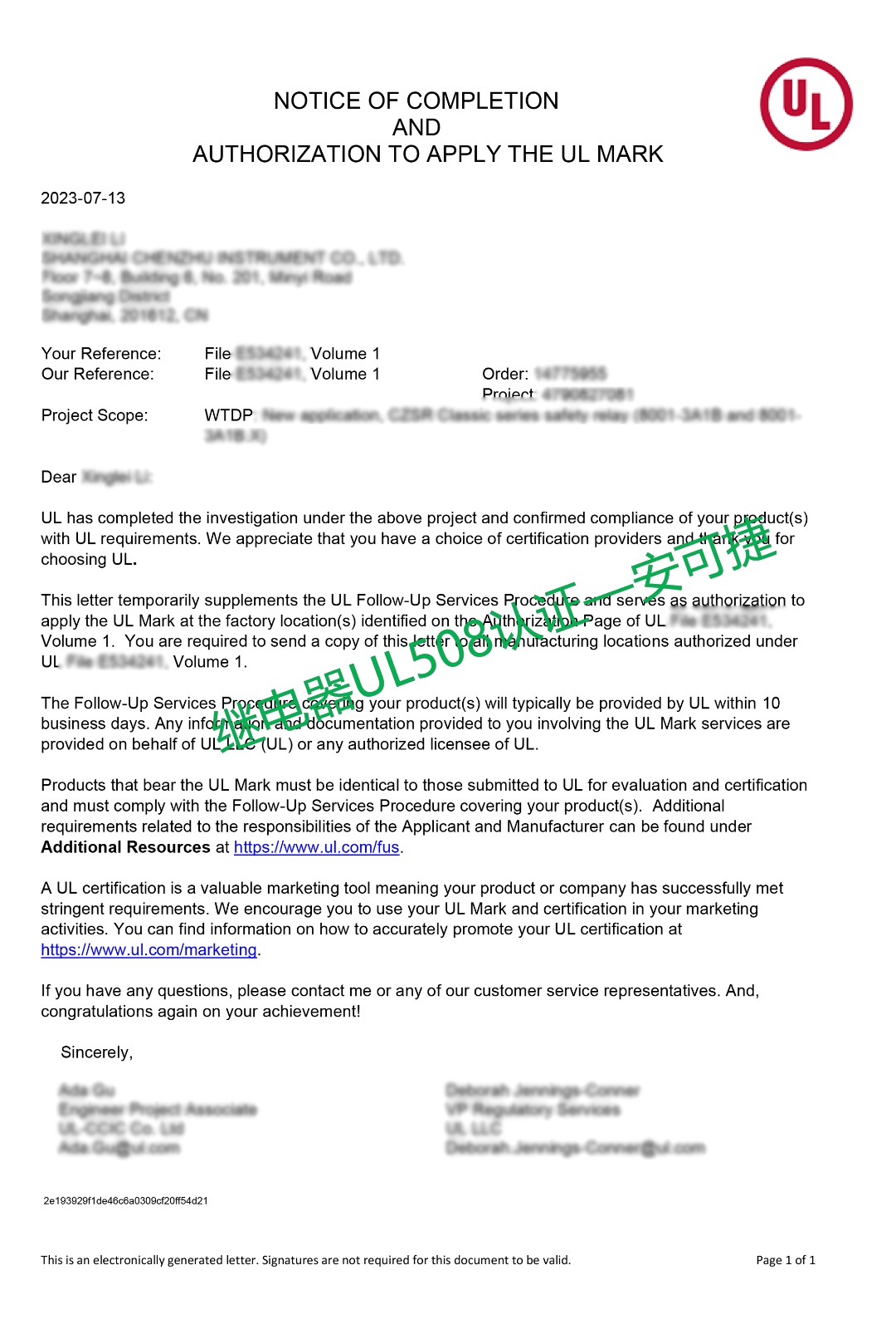 上海某仪表公司作为一家致力于研发和生产继电器的企业,希望能够拓展海外市场,并通过UL508认证提升继电器产品的竞争力和市场价值。因此,他们寻求安可捷的专业技术支持,以确保顺利通过UL508认证。