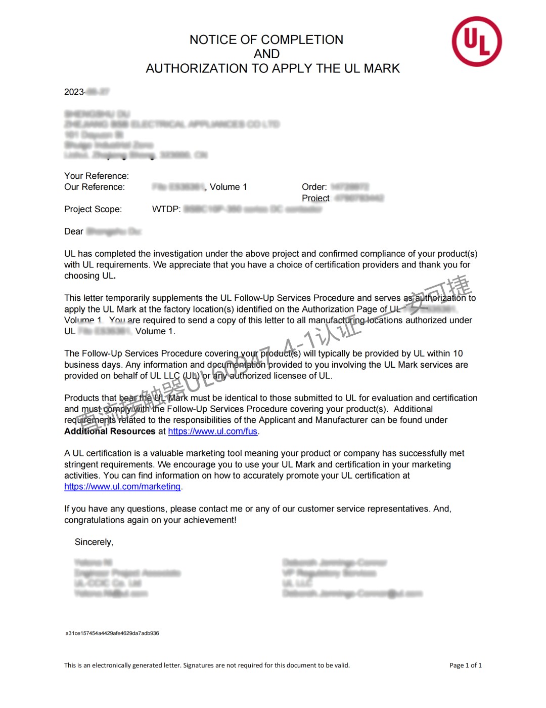 通过安可捷的认证服务,江苏某电子公司和浙江某电器公司成功通过了UL60947-4-1认证。安可捷以其专业知识、个性化服务和专业团队赢得了客户的信任,并帮助他们取得了证书。