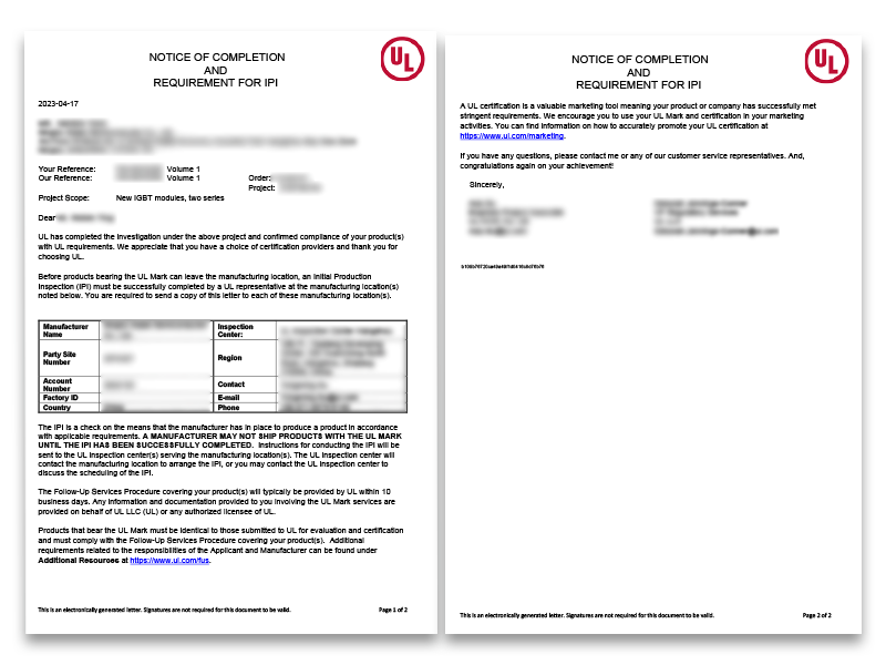 近期,安可捷有幸为某半导体公司提供了IGBT模块UL1557认证服务,成功帮助其获得UL1557认证证书。